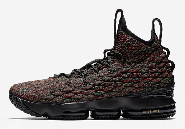 高调追求平等的詹姆斯的LeBron 15 “BHM”版本采用了泛非旗帜的绿黑红颜色织成的BattleKnit鞋面,其他部分全部为黑色,只有鞋提的金色“BHM”LOGO和气垫上金色数字“07 13 2016”,这个日期代表2016年ESPNS颁奖礼上“风尘四侠”开场演讲(图8),为黑人被警察枪杀案件发声,呼吁停止种族歧视,呼吁身为运动员的他们利用各自的影响力,去改变这个社会。