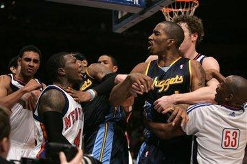"麦迪逊广场花园斗殴事件发生在2006年12月16日,一场在麦迪逊广场花园球馆进行的NBA常规赛中,比赛的双方是纽约尼克斯队与丹佛掘金队。这也是自\"奥本山宫殿事件\"之后,联盟做出最重处罚的一次斗殴事件。