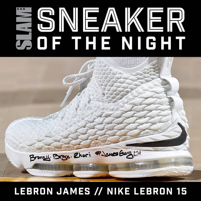 詹姆斯今天上脚自己的签名鞋Nike Lebron 15当选今日球鞋MVP。