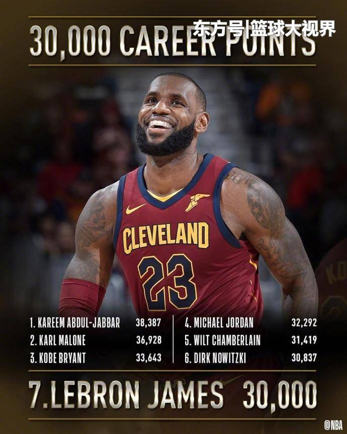 历史唯一!詹姆斯目前已经得到30000分,成为NBA历史上唯一一位达成30000分7000篮板7000助攻的球员!30000+8000+8000也不再遥远!今天,我们一同见证了历史!!