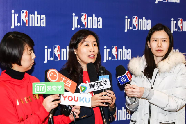 NBA中国青少年发展副总裁王晔女士(中)接受采访