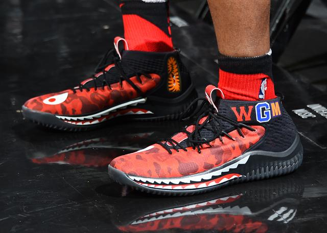 赛前热身时,利拉德穿上了那双他与知名潮流品牌联名推出的鲨鱼头涂装签名鞋,“World Gone Mad(世界陷入疯狂)”的三个首字母“WGM”就印在鞋帮上,与利拉德新换的地垄沟发型相映成趣。而今天的利拉德就如同疯狂的鲨鱼头涂装战斗机,一次次俯冲让快船遍体鳞伤。