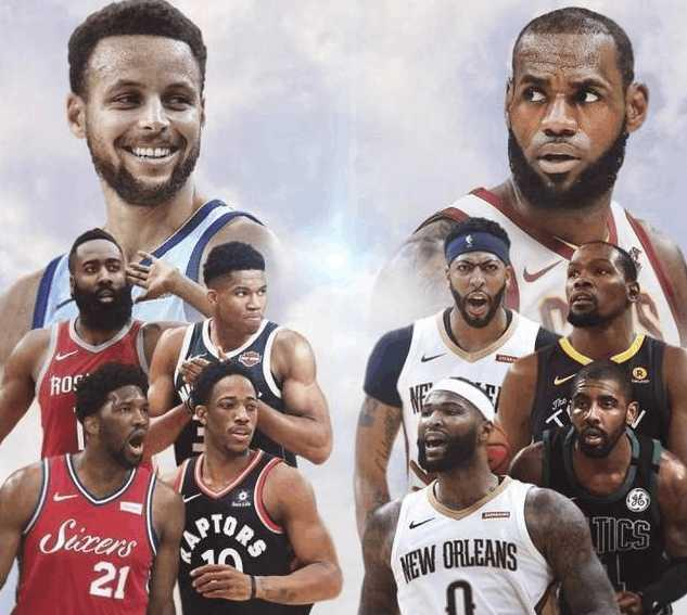 现役NBA最强五人组肯定要选出各个位置最优秀最均衡最具有统治性的球员,现役五人组在NBA如今球星云集的年代确实选择困难,我们先不妨参考一下2018全明星阵容,这里面几乎囊括了NBA所有最顶级的球员。以下是今年库里和詹姆斯队的先发阵容。