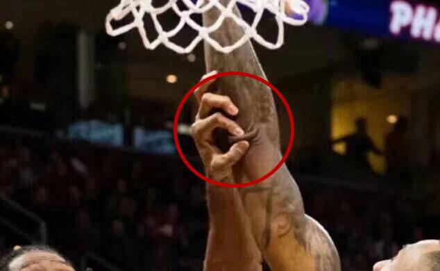 不过,通过慢镜头我们可以看到,内内在空中还使出了一记绝招——“掐死”詹姆斯。