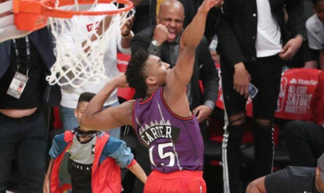 要说全场下来最让观众惊喜的一扣,莫过于是决赛阶段米切尔致敬卡特的360度转体大风车暴扣,这一球虽然不及卡特那么流畅,但毕竟米切尔身高只有191cm,臂展也不像卡特那样达到了变态的218cm,所以能够完成就已经非常难得了。