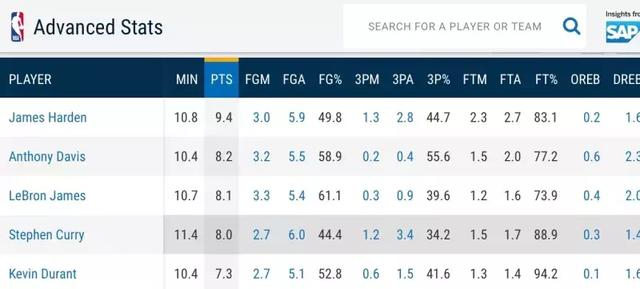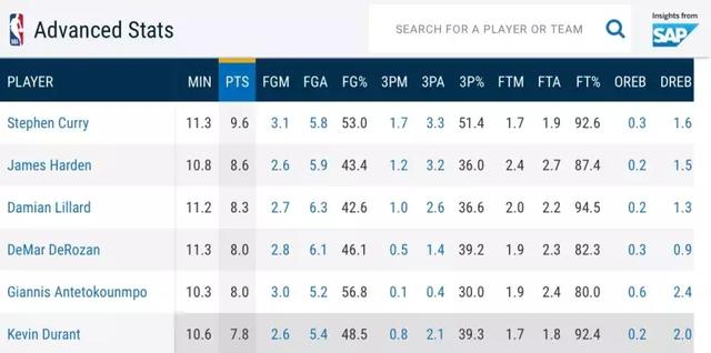 全明星落下帷幕后,各队必定进一步发力争夺季后赛席位,而各明星球员也会贡献更多精彩的表现。在Post All Star的比赛开始前,我们来回顾下本赛季场均单节得分top5的球员表现。