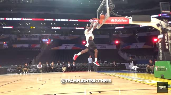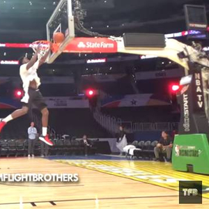最近有媒体曝出了奥拉迪波在扣篮大赛上未展示出的动作,360度转身轻打板扣篮!只见他起跳后在空中完成转身动作,随后左手打板,右手完成扣篮动作,观赏度和难度颇高。