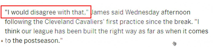 可是对于这种还未发生的改制,骑士队球星勒布朗-詹姆斯直接给予了反对意见,他表示:我不同意,我认为现在的季后赛赛制是正确赛制的!我们已经证明全明星改制是正确的,但是请不要对季后赛进行过大的修改!