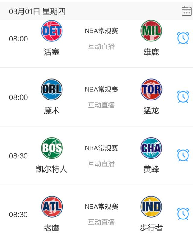 3月1日,NBA一共安排了九场比赛,其中有视频直播的就三场比赛,如果想看其他场次比赛必须需要腾讯体育会员。