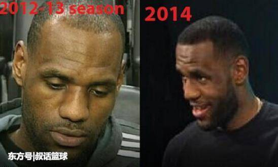 一开始观众意识到这一点是从詹姆斯不断上移的发带中发现了秘密,后来小皇帝干脆舍弃了发带,以回击质疑。据他自己说此举是为了和其他队友保持一致,但关于他植发的传言仍不绝于耳。从照片对比来看,他的确很有可能接受了相关处理,但詹姆斯却不愿承认,也不愿留光头。