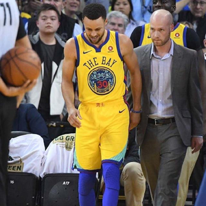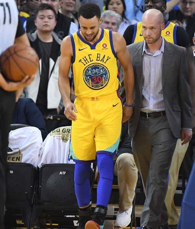 比赛刚刚开始,勇士队便遭遇不幸。开场仅2分钟,库里在一次上篮后不幸踩到马刺球员默里,造成右脚踝扭伤,目前已经回到了更衣室,据勇士官方公关的消息称,他将接受脚踝情况检查,本场比赛不会回归。