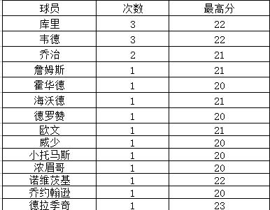库里的得分爆发力十分强大,而韦德更是多次在季后赛证明过自己,两人都是可以打硬仗的巨星。库里和韦德在季后赛都有过3次单节20+的表现,高居现役第一。而库里和韦德的单节最高分一样,都为22分。不过库里目前正处于巅峰,他未来有机会将这一记录继续扩大。