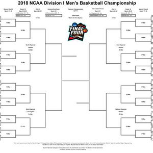 晋级全国锦标赛的68支队伍被分成4个赛区,每个赛区17支球队。其中有8支球队将首先进行最初四强(first four),决出最终的64支队伍,以1-16号种子排位分布在4个赛区。从64强到32强,32强到甜蜜16强(Sweet Sixteen)、精英8强(Elite Eight)以及最终四强(Final Four)!