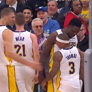 ↑↑↑当比赛进行到第四节的10分30秒左右时,小托马斯连续取分,并接连为队友送出妙传,引领湖人打出了一波高潮,将分差拉大到将近20分;现场的球迷和队友们都欢呼雀跃了起来,纷纷为他送来了庆祝的掌声!