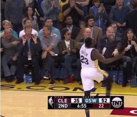 这个招式之前勇士队的格林也用过,在之前勇士和骑士的比赛中,格林曾模仿詹姆斯骗犯规的动作,很夸张的表演着: