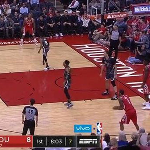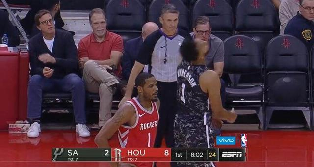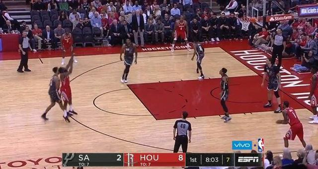 面对缺少了莱昂纳德和阿德的马刺,火箭打的还是很轻松,在比赛打到首节8分钟的时候,哈登弧顶单打马刺的大锤,并且造成了大锤的犯规,直接获得了三次罚球。