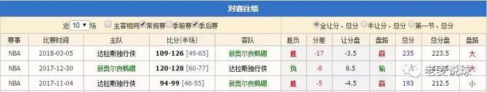 以上,综合两队在近期状态、战意以及球队阵容实力的对比之后,盘口的指向性明显是主队的鹈鹕概率更高。此战主队穿盘有望。