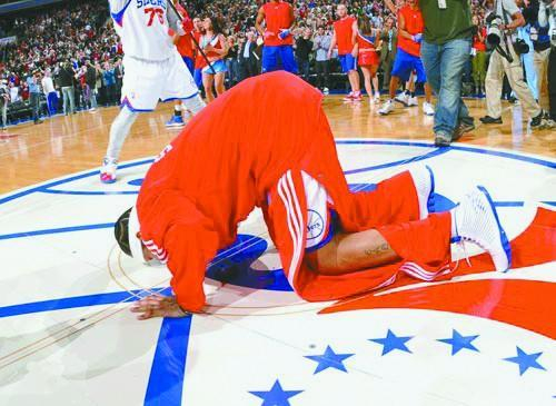 2010年,重披76人球衣的艾弗森亲吻地板