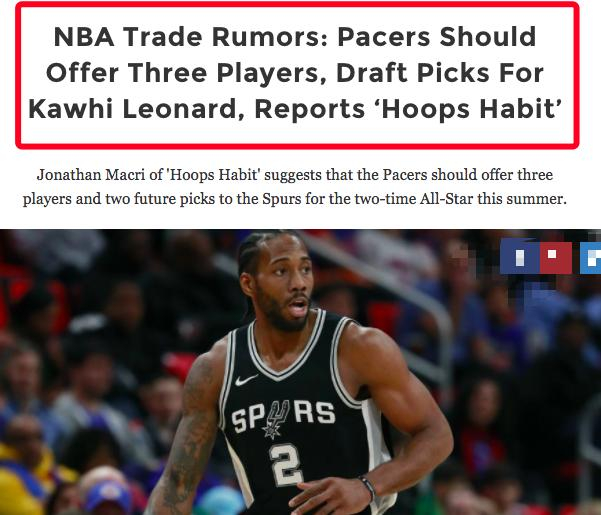 Hoops Habit的资深记者马克里报道指出,步行者计划送出迈尔斯-特纳、博格丹诺维奇、利夫、2018年和2020年的两个首轮签,用来交易伦纳德。