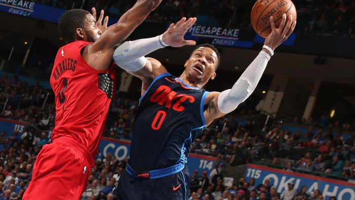 (搜狐体育独家稿件 严禁转载)北京时间3月26日,NBA常规赛激战9场,其中波特兰开拓者客场以108-105击败了俄克拉荷马城雷霆,结束了两连败,而且本赛季4-0横扫雷霆。威少本场真可谓是亦神亦鬼,他既可以迎来17000分的个人里程碑,但是也全场20投9中,11次投篮打铁,而且还引发了球场冲突吃T,最终还因为6犯离场。