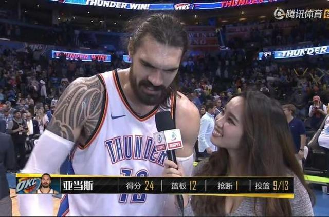 腾讯NBA女记者身着性感, 采访雷霆巨头, 网友: 好想扔掉话筒