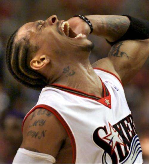 “费城之子”艾弗森对最招牌的动作莫过于聆听动作,每次打进关键球,艾弗森都会用耳朵聆听现场全场观众的呐喊,享受着整个球馆给他带来的鼓励!其实艾弗森是渴望别人对他自己的肯定,大家都知道,小时候艾弗森很穷,上学的时候还跟黑道扯上过关系。他受人指使去参与斗殴,完全是一个不良少年,不过着一切也归于他渴望从别人那里得到所谓的肯定。幸好,篮球拯救了他。从此球场上有多了这位篮球精灵。