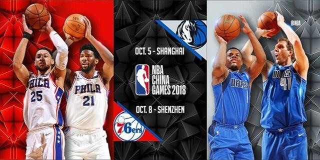 NBA官方宣布,达拉斯独行侠和费城76人将出战2018年NBA中国赛,分别于10月5日、8日在上海、深圳进行比赛。