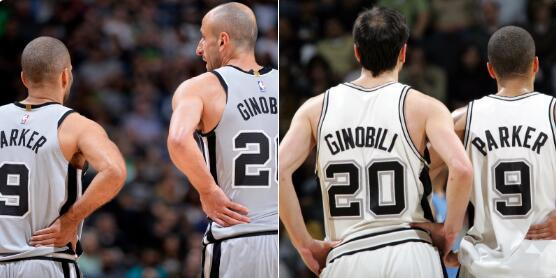 虎扑4月25日讯 马刺今日季后赛第5场在客场以91-99输给勇士,总比分1-4被淘汰出局,赛后媒体TNT在推特上发布了一张马刺球员马努-吉诺比利和托尼-帕克的对比图,并配文写道:“16个赛季……”