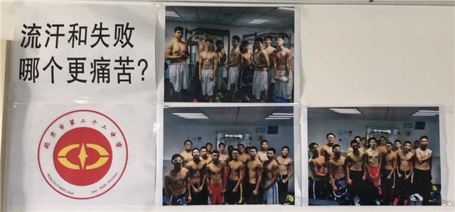 为了营造更好的训练环境,学校还升级了球员们的力量房,球员们更壮硕的身材也随之练了出来。二十二中有个传统,身体薄弱的队员在增重期间,会每隔一段时间拍一张全身照,然后教练把这些照片按顺序一张接一张贴在墙上,从细胳膊细腿到肌肉发达的过程呈现在所有人面前。