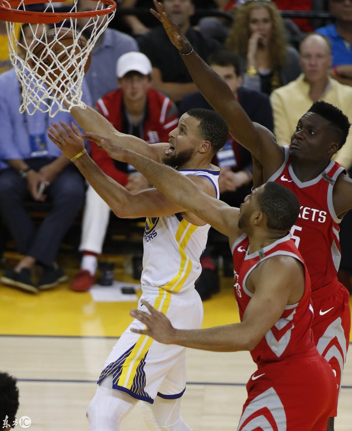 库里本场比赛出战40分钟,23投12中,三分球14投5中,得到29分5篮板6助攻。让人出乎意料的是,库里还贡献了3次封盖,并且,库里本场的正负值为+33,全队最高。虽然勇士在第一节集体低迷,不够专注,外线手感也冰冷。但是在经过中场休息布置调整以后,他们找回了自己的节奏。他们抓住了火箭的防守松懈期,打出流畅配合,全队助攻26次,远超前两场。当勇士回到正确的打球模式,单核作战的火箭很难取胜。(图片来自东方IC)