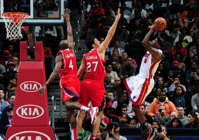 "后仰跳投这样优美的动作,似乎老詹职业生涯前期用得比较少,命中率也比较低,但是一个赛季多一样武器的老詹,本赛季完全开发出了后仰跳投这项技能。