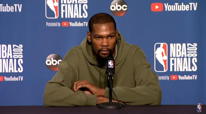 直播吧6月8日讯 明天上午9点,总决赛第4场即将在速贷球馆打响,勇士继续做客对阵骑士。在今天结束训练之后,勇士球星杜兰特接受了媒体采访。