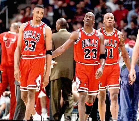 乔丹时代的公牛拿下了72胜10负的战绩创造了公牛王朝,球队里有“篮球之神”乔丹,有超级小前锋皮蓬,还有一个发型浮夸到不行的罗德曼。这个三巨头就厉害了,尽管乔丹当年是整个联盟的王者,罗德曼场下一句话都不愿意跟他说,一点交流都没有。