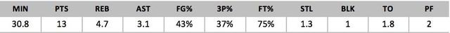埃文斯是球队重要的角色球员,但整个赛季他都没有过多依赖个人得分,大部分时间他都是接球投篮,也可以传球,在得分和助攻上领先全队。通常情况下,他都是防守对方的最好的侧翼得分手,展现出令人印象深刻的纪律性,对比赛施加自己的影响。无论防无球还是有球,都不让人担心。