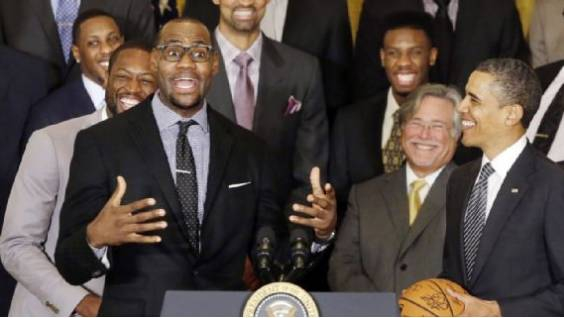 一年后,在与迈阿密热火队签约几周后,詹姆斯回到白宫作为庆祝奥巴马49岁生日的一场小游戏的一员。参加游戏的还有科比-布莱恩特、格兰特-希尔、卡梅罗-安东尼、昌西-比卢普斯、魔术师约翰逊、阿隆佐-莫宁、克里斯-保罗、德里克-罗斯、比尔-拉塞尔、德维恩-韦德和大卫-韦斯特。