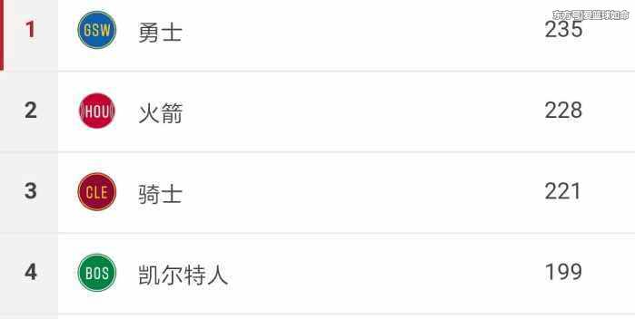 季后赛球队三分榜:凯尔特人第4 只服第2名