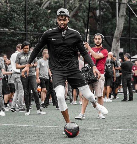 虎扑 6 月 21 日讯 篮网球员丹吉洛 - 拉塞尔今天在 Instagram 上发布了一张自己在纳什基金会慈善足球赛上踢球的照片。