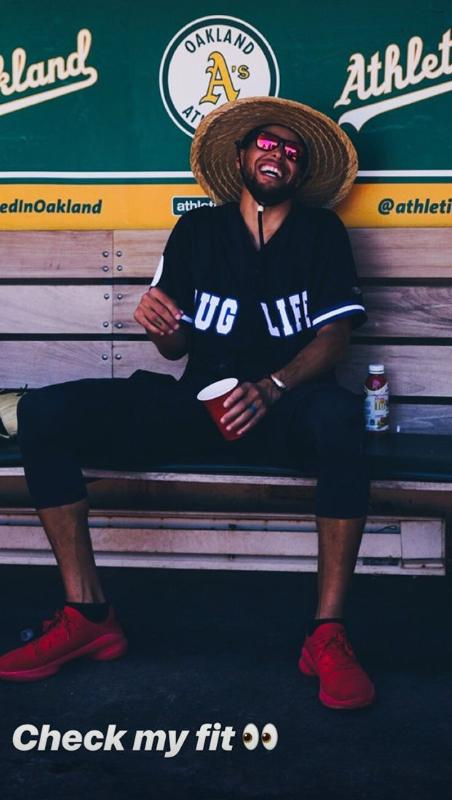 虎扑6月24日讯 勇士后卫斯蒂芬-库里今日在Instagram上发布了一张自己坐在奥克兰运动家队(美国职业棒球队)队标前的照片(见新闻配图)。