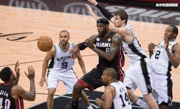 而这一年总决赛马刺最精明的一个战术就是切断詹姆斯和队友的关联,再加上伦纳德出色的防守能力,这也让詹姆斯在进攻端的场均助攻只有4个,得分也下降到了28.2分。而一旦詹姆斯陷入单打的情况下,这对于詹姆斯的球队来说是致命性的。所以在这一年总决赛,马刺凭借团队篮球和限制詹姆斯的战术,这也马刺在轻松击败热火拿下总冠军。