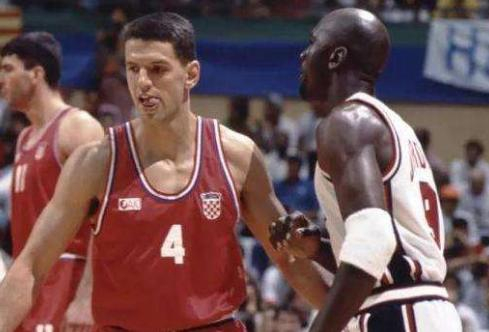 时间回到1992年巴塞罗那奥运会,当时彼得洛维奇和库科奇领衔的克罗地亚一路杀进决赛。面对强大的美国梦一,尽管最终85-117惨败32分,但他们并不像其他球队那样不堪一击。那场比赛彼得洛维奇得到24分,比乔丹还多2分;库科奇贡献16分和9助攻,成功串联起球队的进攻。在他们两人的带动下,克罗地亚还是能够与梦一打出对攻战。即便与星光熠熠的梦一队相比,彼得洛维奇和库科奇同样十分闪耀,完全打出了世界级球星的风采。那届奥运会,梦一场均净胜对手43.8分夺冠,克罗地亚是唯一稍微能够与他们掰掰手腕的球队。两次对阵梦一,克罗地亚场均输32.5分。这样的分差看起来还是很夸张,但需要知道的是,其他球队面对梦一的时候更加惨淡,基本都是输40分开外。