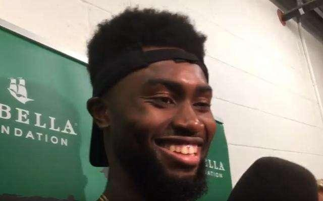 北京时间7月13日,凯尔特人球员杰伦-布朗与凯里-欧文结伴来到了拉斯维加斯夏季联赛现场,观看球队与尼克斯之间的比赛,比赛间隙,记者们也抓住了这个机会对布朗进行了一番采访,布朗回答了一些夏季联赛的问题,最后还回应了詹皇去湖人队这件事。