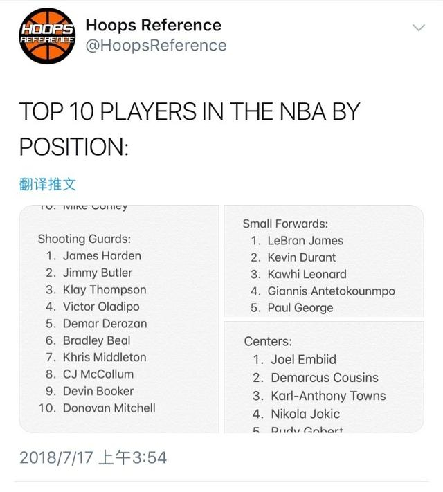 美媒NBA现役各位置top10出炉!火箭双星闪耀!勇士排名出人意料