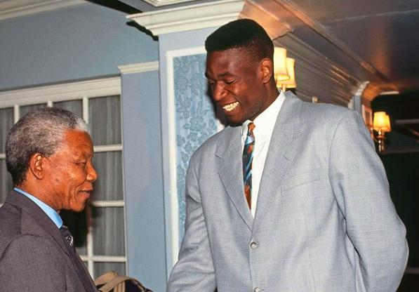 虎扑7月20日讯 前NBA球星、名人堂成员迪肯贝-穆托姆博在个人Instagram上晒出与南非前总统纳尔逊-曼德拉握手的照片(见新闻配图)。