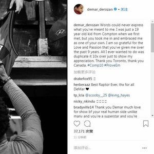 北京时间7月23日,尽管猛龙和马刺的交易已经完成了,但德罗赞仍然很感激猛龙,并且多次长文晒照致敬这座城市和他们的球迷。