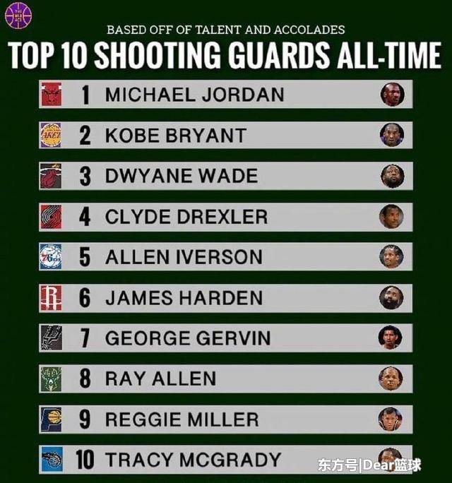 美媒评NBA历史十大得分后卫,四大分卫卡特没上榜,哈登仅第六
