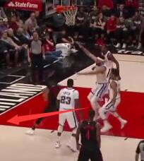 在这次防守中 ,大家可以看见,在做完假动作以后,贾斯汀霍乐迪的身体平衡已经失去,同时防守站位也已经完全失去。所以,cj麦克乐姆毫不犹豫的选择三分出手。结果也是稳稳命中。