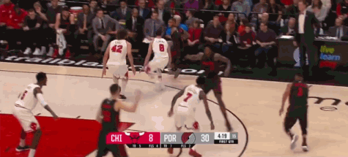 2. cj麦克乐姆的下一个进攻特点是他时常会利用底线进行突破。然后在突破的间隙寻找可以上篮传球或者是急停跳投的机会。这点对于后卫来说并不容易做到。利用GIF动图我们来看看CJ麦科勒姆是怎么做的。