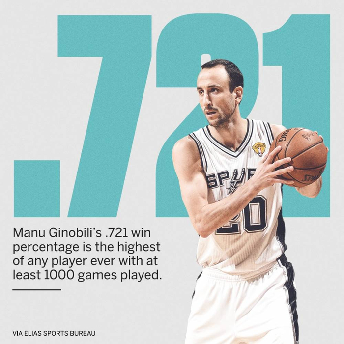他和马努、邓肯、帕克在一个队,他的胜率也许有点水分
