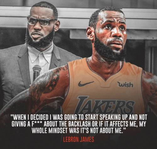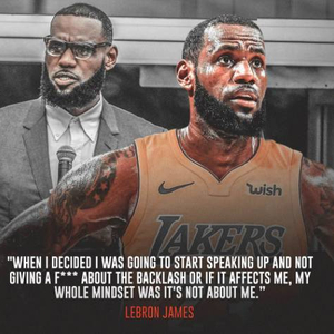 Los Angeles Lakers star LeBron James on speaking out: "When I decided I was going to start speaking up and not giving a fuck about the backlash or if it affects me, my whole mindset was it's not about me. My popularity went down. But my truth to so many different kids and so many different people was broader than me."