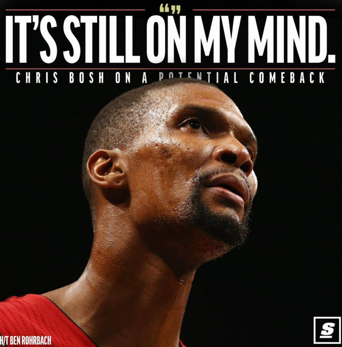 据雅虎记者Ben Rohrback消息,克里斯-波什仍有复出的想法。